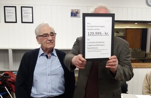 Denne gang kunne formand Leif overrække klubben en check på 129.999 kroner til ungdomsarbejdet, og det er helt fantastisk!