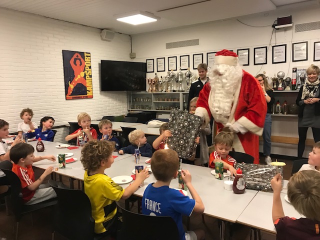 Julemanden var derfor på pletten i fredags, hvor de helt små spillere holdt juleafslutning. Efter en lille turnering i hallen, var der frugt, æbleskiver og guf i Cafeen, og