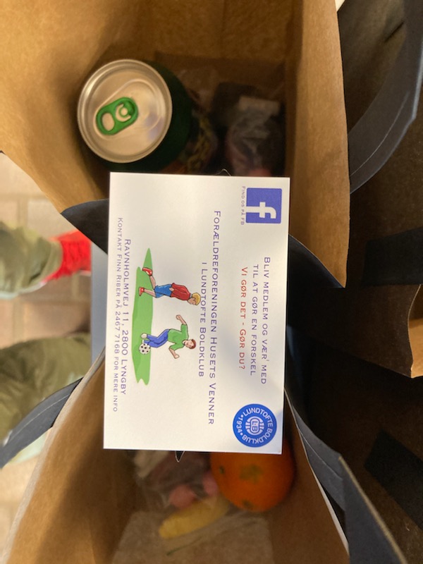 Men til five-a-siden var Forældreforeningen kommet ud af corona-busken og stod som sædvanligt for forplejning til alle ungdomsholdene. Alt blev klaret inden for rammerne af restriktionerne, der selvfølgelig skal overholdes, så i år var der ikke lange køer ved disken i cafeen. I stedet fik alle deltagerne udleveret en lille pose med forplejning, så hele arrangementet kunne holdes udendørs. Igen må vi bare konstatere at vores uundværlige og uvurderlige Forældreforening finder nye veje til at servicere og forkæle fodboldklubbens medlemmer. En kæmpe tak til Jer alle.