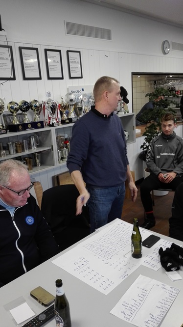 Lørdag den 18. november mødtes 40 spillere/trænere og ledere fra den voksne afdelingen af klubben til 4 timers hyggelig fodbold, spisning og samvær. Glædeligt at klubbens ældste afdeling "de voksne mænd" stillede med hele 12 aktive spillere og Per B, som er den ældste aktive spiller i klubben, havde ovenikøbet farmand med - sådan!!