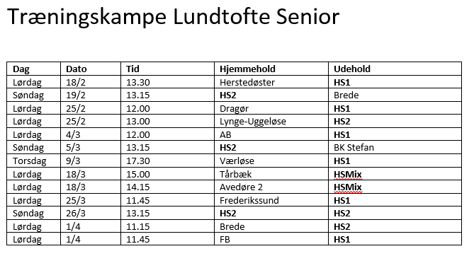 Træningskampe hos seniorafdelingen