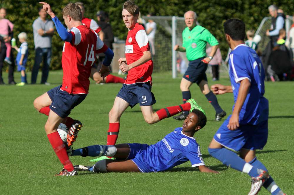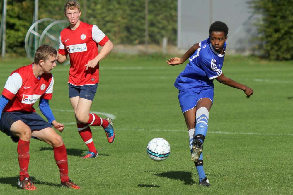 Og 3-0 er bare den "farlige føring" for U19. Helsingør startede anden halvleg med et godt pres og fik også flyttet spillet længere frem på banen. Helt farligt blev det ikke, men de havde 20 gode minutter, hvor vi glemte at holde os til det, vi er bedst til. En kæmpe chance til Lundtofte belv sparket lige på Helsingørs målmand, og derefter gik det stærkt den anden vej. Og selv om Isgren tog en banespurt for at følge med Helsingørs bedste mand, så måtte han give fortabt til sidst, da Helsingørspilleren tordnede bolden i kassen fra kanten af feltet. Et klassemål - respekt for det. Reduceringen gav Helsingør lidt tro på sagen, men bare 7 minutter senere gav Lundtoftes spilovertag gevinst, da Seb scorede til 4-1. Vi havde fundet tilbage til bredden i spillet, og Helsingør blev presset langt bagud. Efter 36 minutter i anden halvleg fik Lundtofte frispark langt ude på banen. Spork valgte at sparke på mål, selv om der var 35 meter ind. Men men men ..... Et fuldstændig rent spark og kuglende hamrede ind lige under overliggeren - klasse og forståelig jubel fra Spork og kammeraterne.