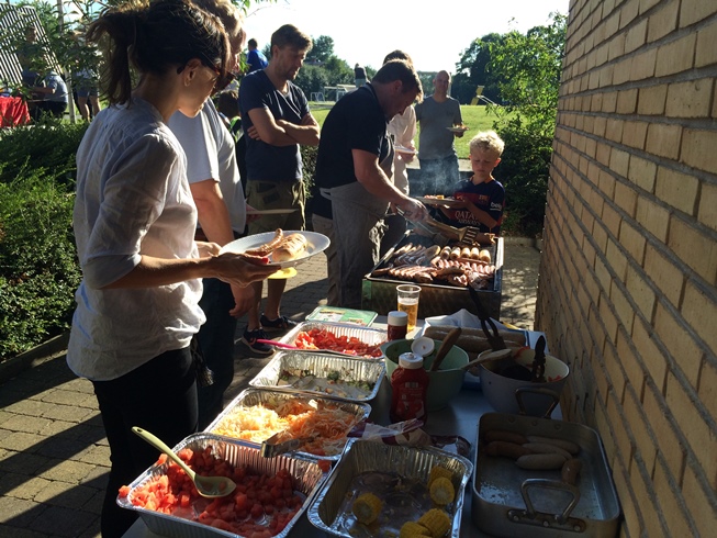 Da træningen var slut var der tændt op i grillen, buffeten var anrettet, og der var duge på bordene. Børn og forældre tog for sig, og snakken gik lystigt. Ungerne sad selvsagt ikke ned så længe ... der var jo bolde i nærheden!