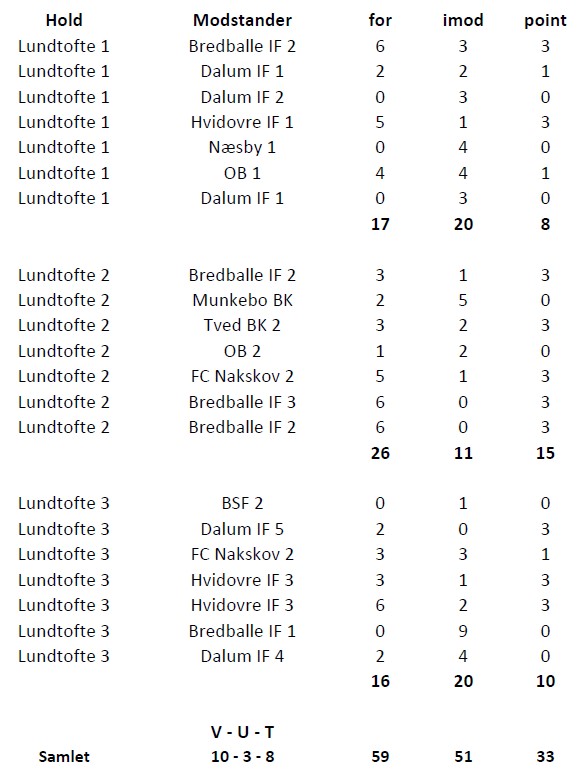 Hjemover i bilen kunne trænerteamet gøre status over en fantastisk fodboldweekend. 21 kampe var spillet og det var blevet til 10 sejre, 3 uafgjorte og 8 nederlag med en samlet målscore på 59-51. Fremfor alt havde det været en fantastisk oplevelse for alle drenge, der de seneste dage var vokset som hold både fodboldmæssigt og socialt. De har fra start til slut skudt brystet frem og repræsenteret Lundtofte Boldklub på fornemmeste vis.
