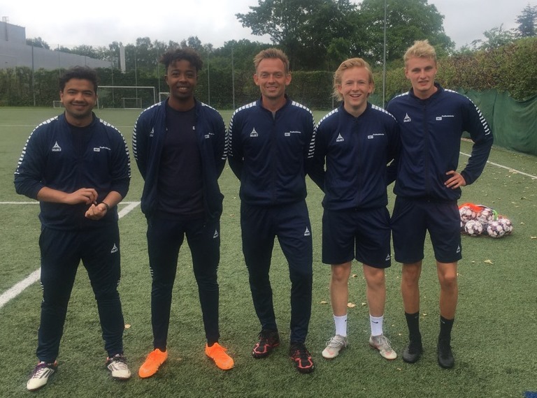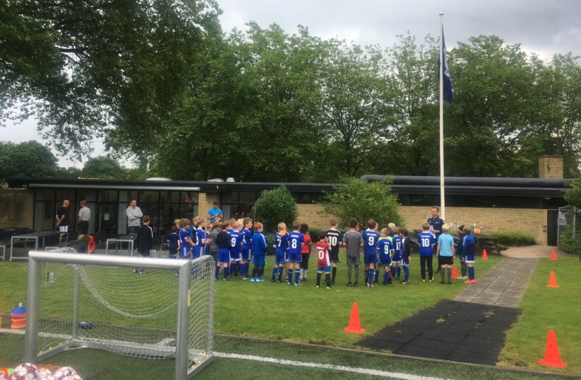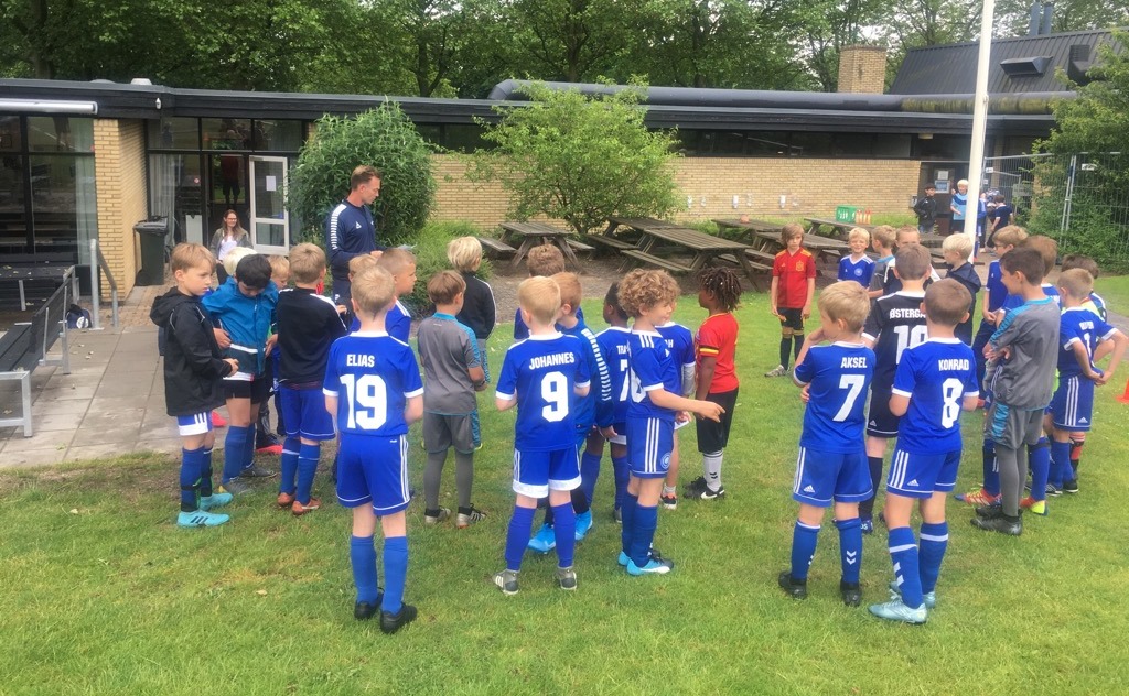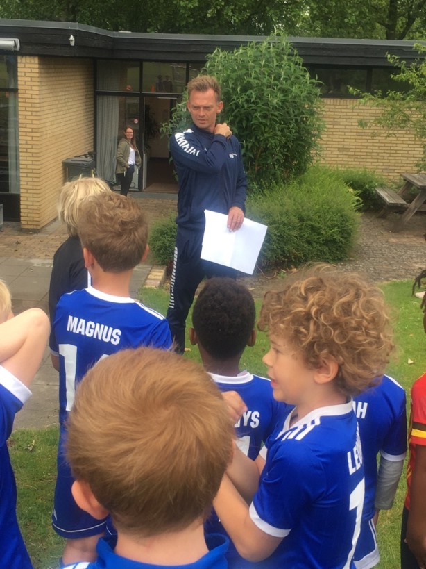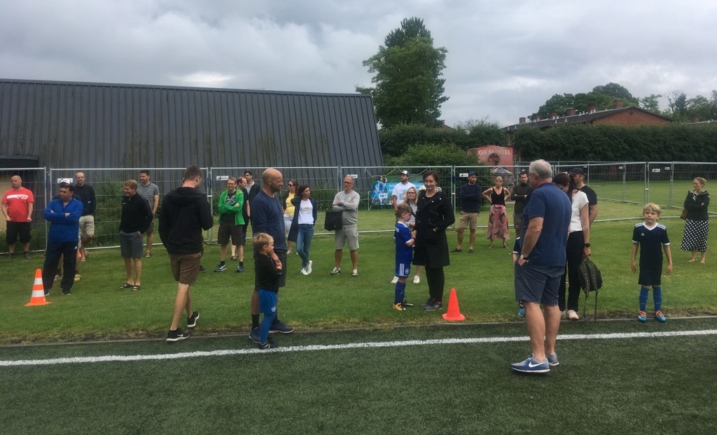 Minifodboldskolen for de yngste er i fuld gang. 48 tilmeldte fordelt på 4 grupper under kyndig ledelse af Mostafa, Ibrahim, Christian og Mads samt selvfølgelig master coach, Thomas, der i år har været ekstra udfordret i planlægningen på grund af regler og restriktioner som følge af corona. Og selv om der er en masse ekstra at skulle forholde sig til, så forløber det hele som smurt, og man må bare have respekt for både deltagere og trænere, der alle husker at vaske og spritte som en helt naturlig del af samværet. Selv vejret havde master coach'en styr på, perfekt vandede baner og dejlig lunt vejr, da kl blev 10 og holdene blev fordelt på de 4 baner.